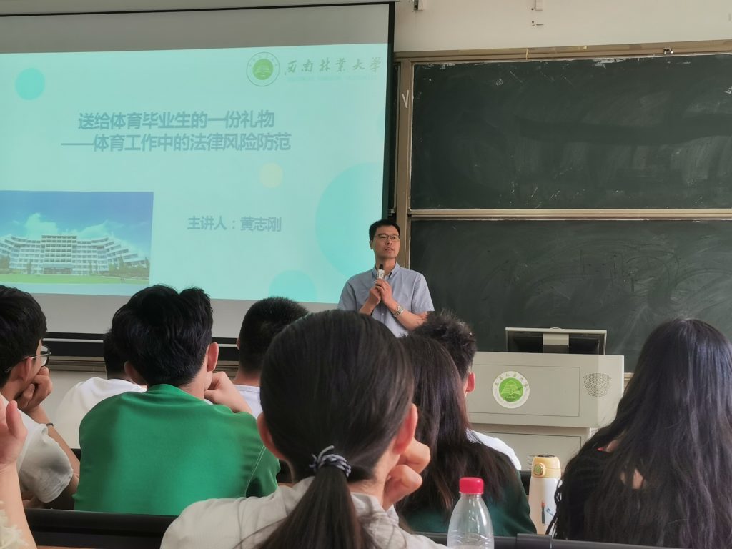 主题讲座,奏响安全离校“护航曲”。为确保全体毕业生能安全有序地毕业离校,黄志刚老师代表学院为毕业生开展了题为“送给毕业生的一份礼物–体育工作中的法律风险防范”的专题讲座,强调安全是健康之本、和谐之需,叮嘱同学们在毕业离校期间加强和谐稳定的安全意识,确保安全离校。并激励全体毕业生在新的学习工作岗位上书写辉煌,再创佳绩。